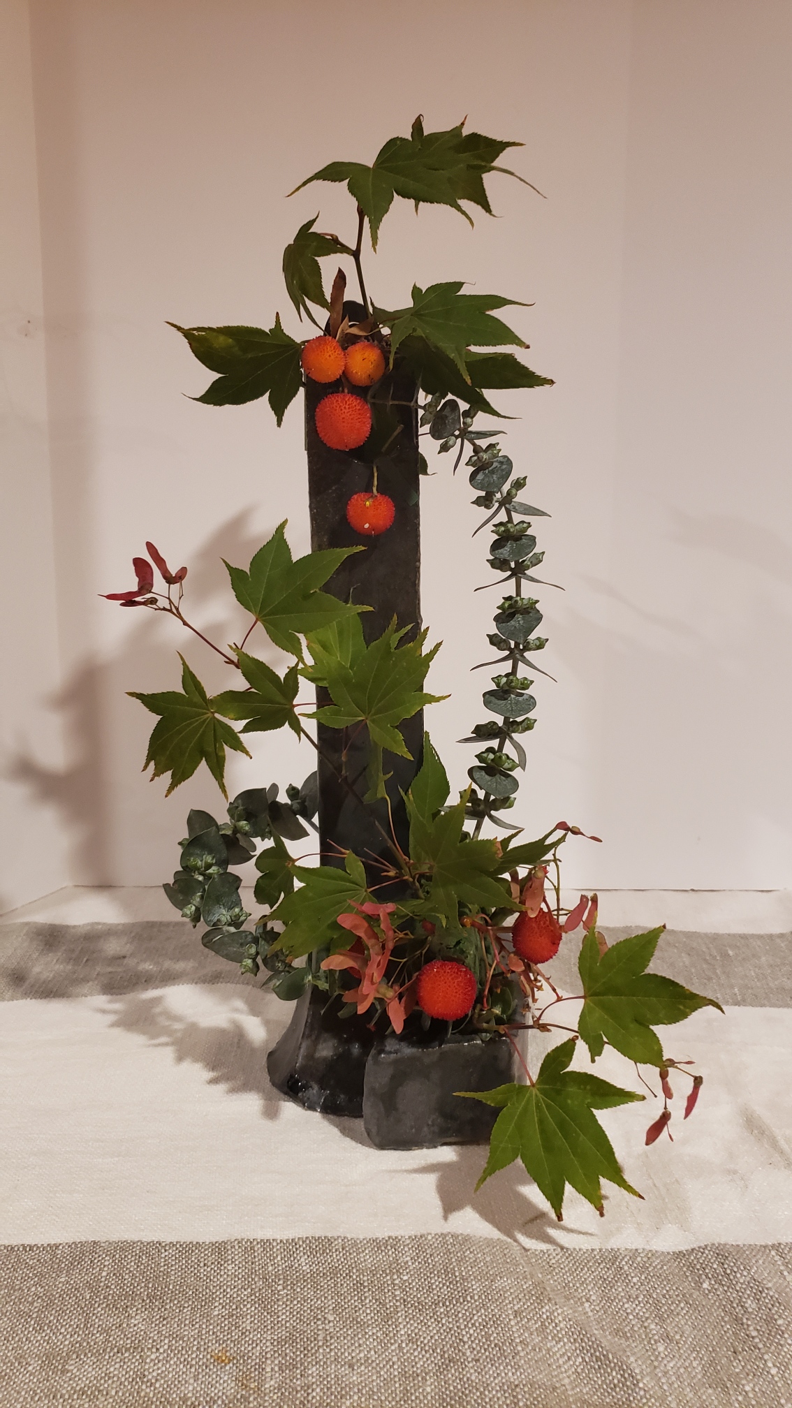 Plant material Red leaf maple, spiral Eucalyptus, compact strawberry bush berries.